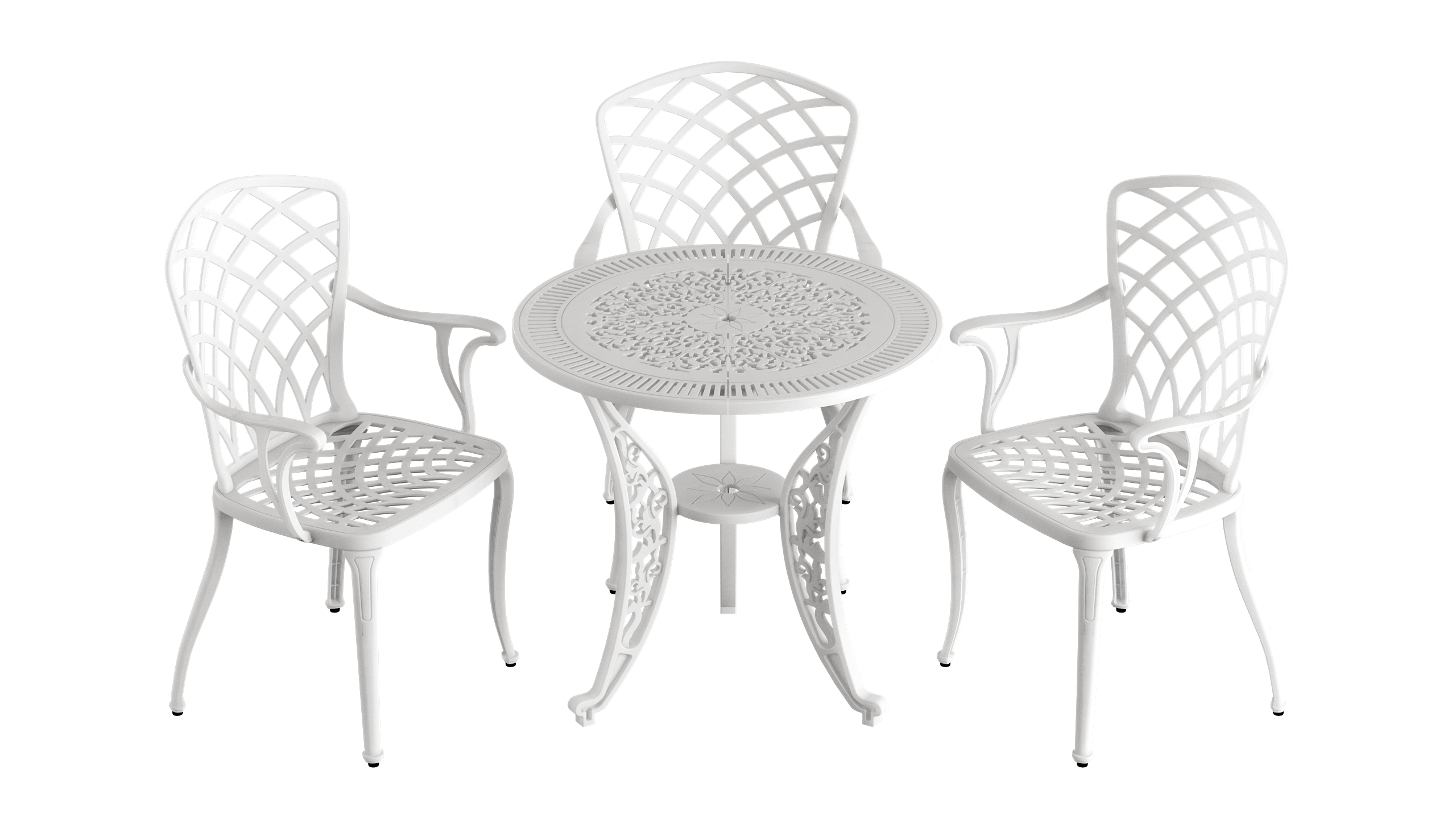• Set Mobilier Gradina HubRom, 1xMasa Rotunda(75x72), 3xScaun HITIT(43x42x50x92) Alb