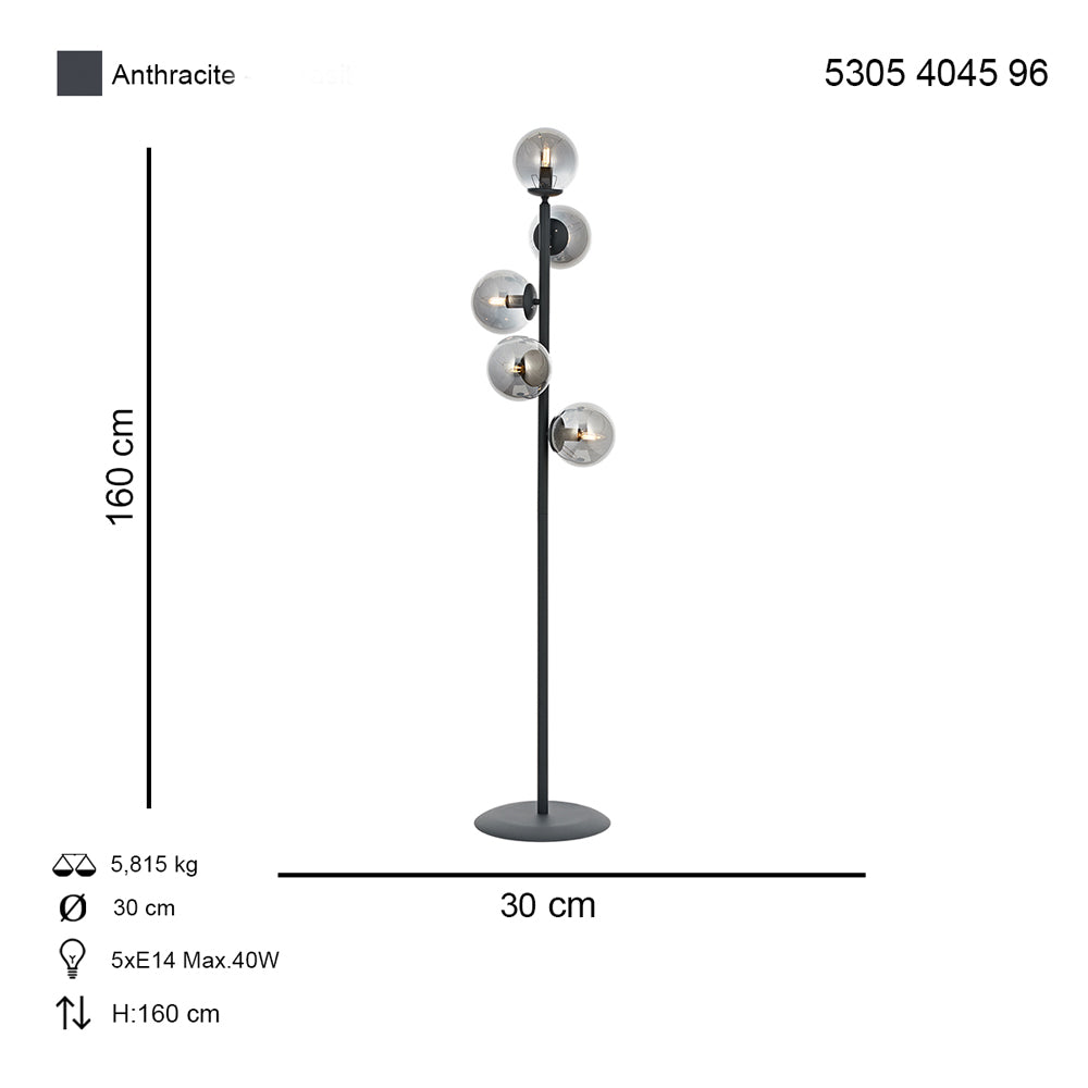 Lampadar HubRom, Z LAM 5305-4045-96 30x30xHmax160 cm 5xE14-40W Antracit