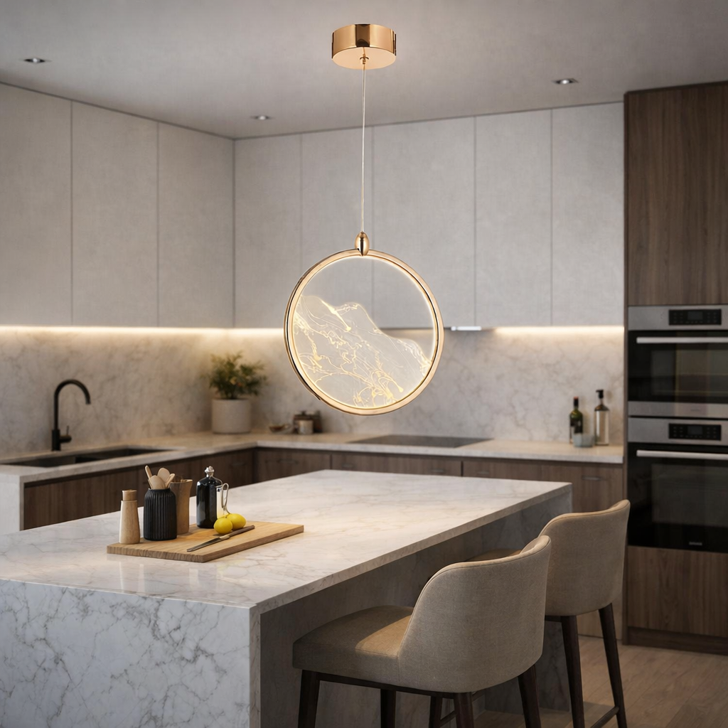 Panoul luminos cu aspect marmorat oferă o iluminare uniformă și plăcută, contribuind la o atmosferă caldă și primitoare. Lumina neutră de 3200K asigură confort vizual și nu obosește ochii. Este ideală pentru living, deasupra insulei de bucătărie, a mesei de dining sau pentru spații de birouri moderne.