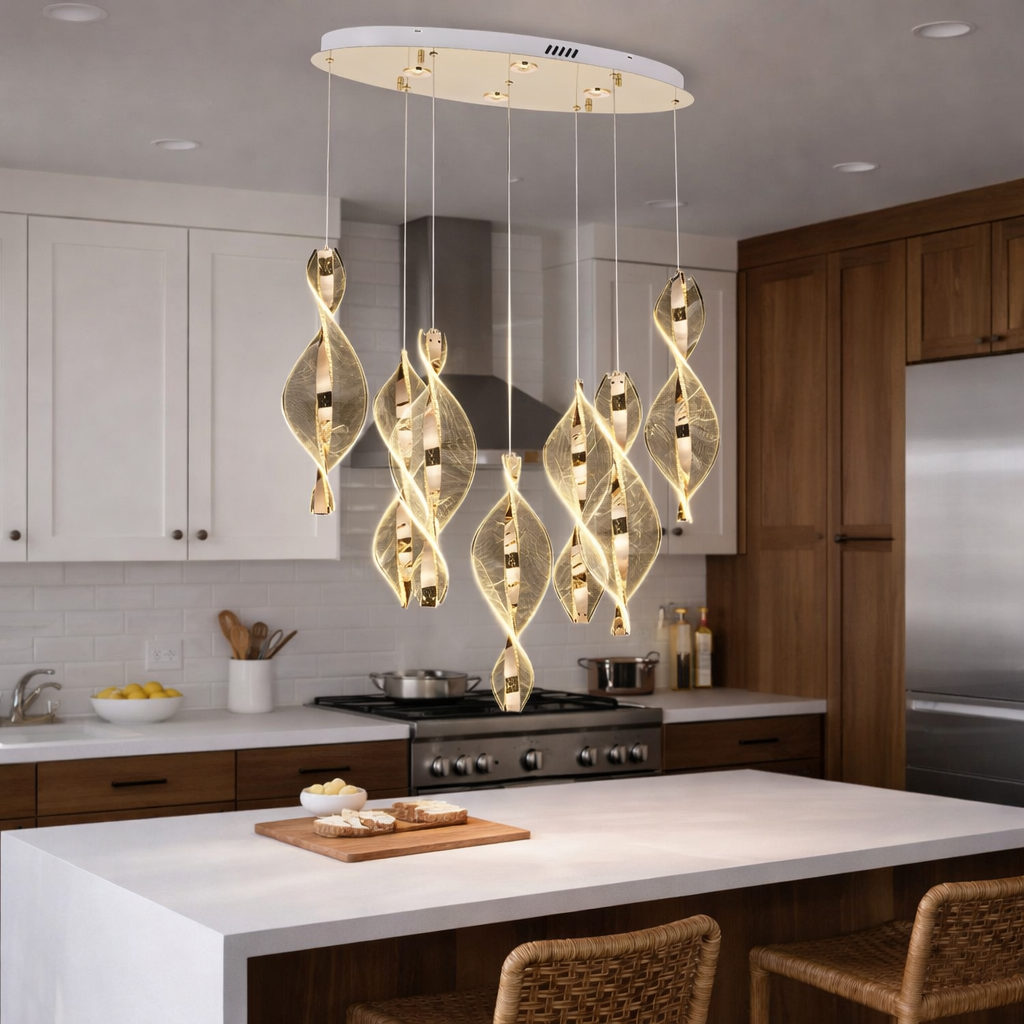 Cu un design modern și detalii elegante, Candelabrul LED suspendat HubRom LIKYA oferă o soluție de iluminat estetică și funcțională pentru bucătărie, sufragerie, living sau deasupra insulei de bucătărie. Designul său spiralat în nuanță aurie (Auriu) adaugă un plus de rafinament și stil oricărui spațiu.