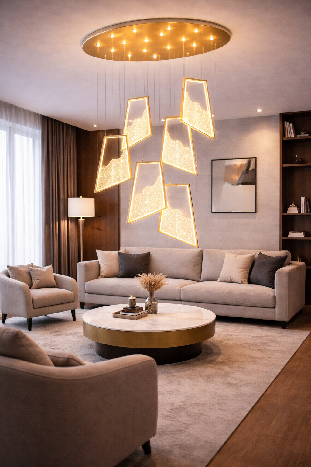 Material: Structură metalică + panouri decorative luminoase cu efect marmorat