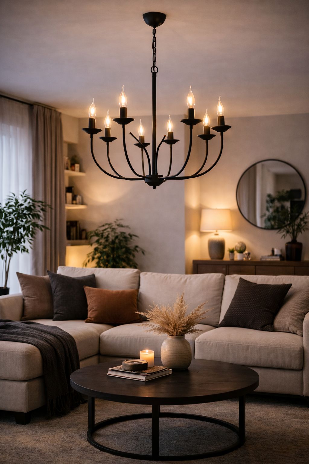 Produsul nostru este fabricat din material metalic. Dimensiuni: 65 cm înălțime; lungime totală 90 cm. Puteți ajusta înălțimea după preferințe. Becurile nu sunt incluse în pachet. Iluminarea variază în funcție de puterea becurilor utilizate. Produsul are soclu de tip E14, de aceea se recomandă utilizarea becurilor C35 cu soclu E14. Becurile compatibile pot fi găsite căutând "Bec Apliqa C35" în secțiunea de căutare. Acest model are 8 locuri pentru becuri și poate ilumina eficient o suprafață medie de 48 m² folosind becuri de 6W. Produsele noastre sunt livrate dezasamblate, pregătite pentru montaj. Șuruburile și diblurile necesare nu sunt incluse. Produsul poate fi curățat cu o cârpă umedă. Evitarea produselor chimice de curățare prelungește durata de viață a produsului. Produsul beneficiază de o garanție de 2 ani. Piese de schimb sunt oferite pentru eventualele daune apărute în timpul transportului.