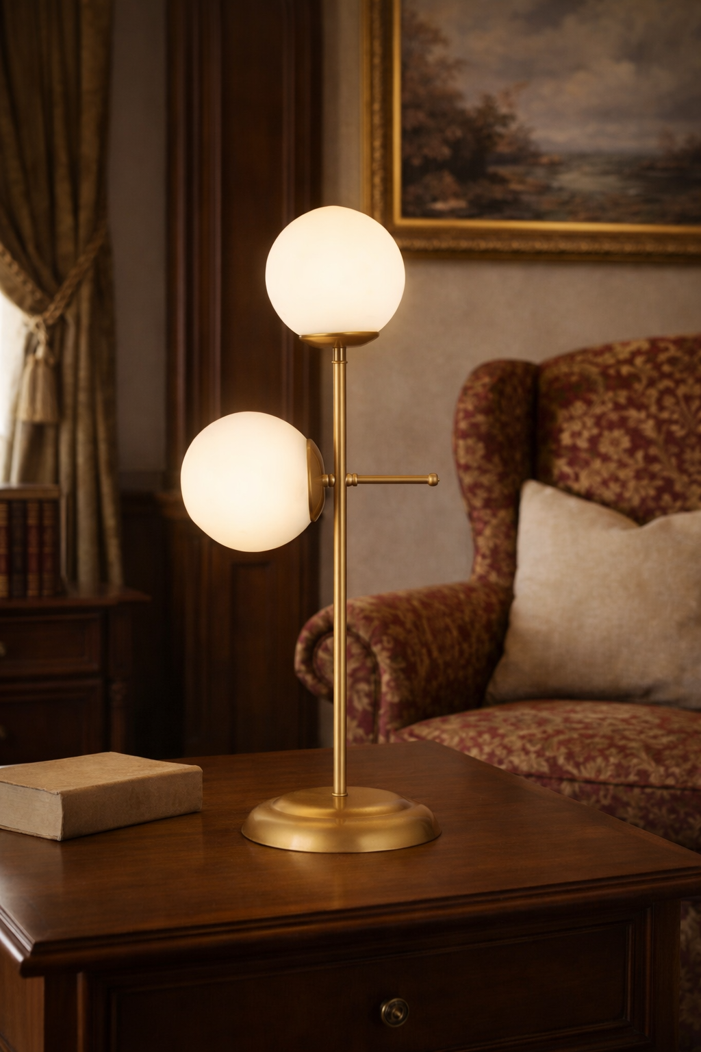 Veioza HubRom GUNAY îmbină eleganța stilului clasic cu accente moderne, devenind un element decorativ rafinat pentru orice interior. Structura metalică cu finisaj Antiq oferă un aspect sofisticat, iar cele două globuri din sticlă opală distribuie lumina uniform, creând o atmosferă caldă și primitoare.